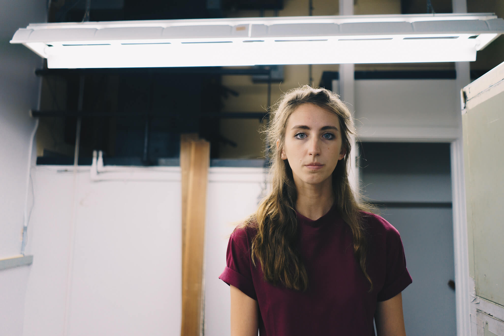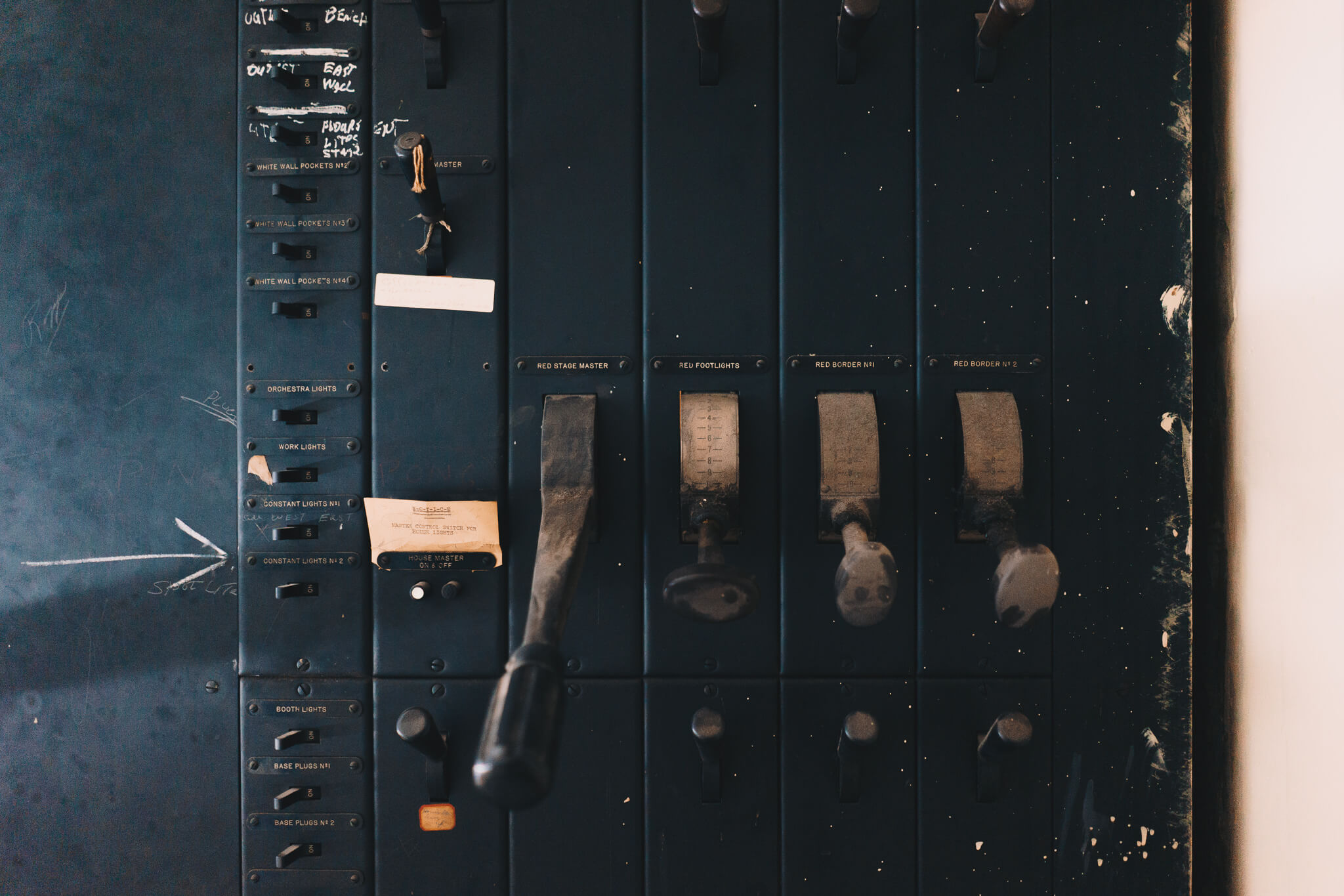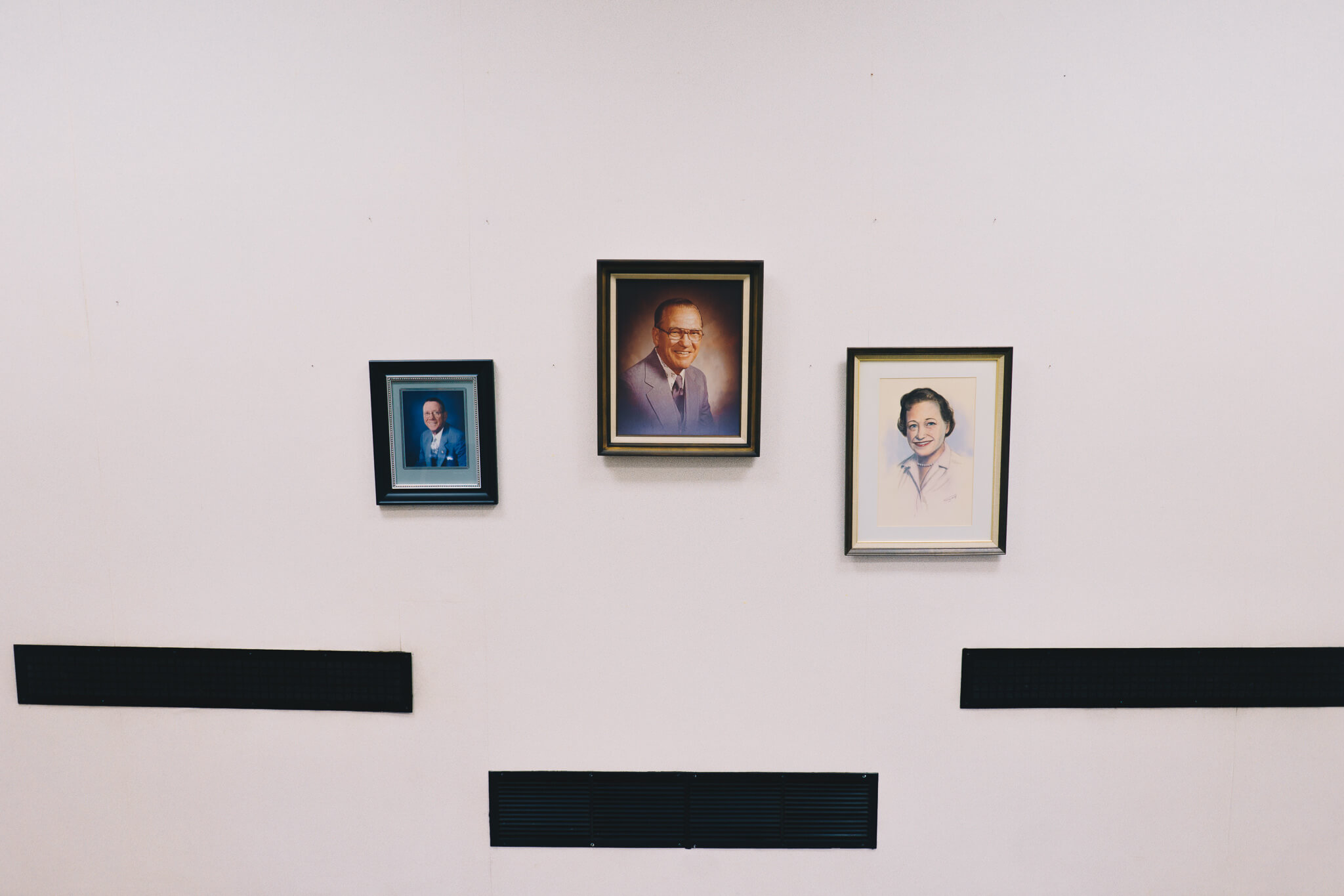 Once on the second floor, we walked past ornate water fountains to what was originally a theater, both for performances and motion pictures at different stages of life. A now walled-in stage, back room mechanicals, rectangular openings for projectors, and striking ceiling all point back to this original purpose: