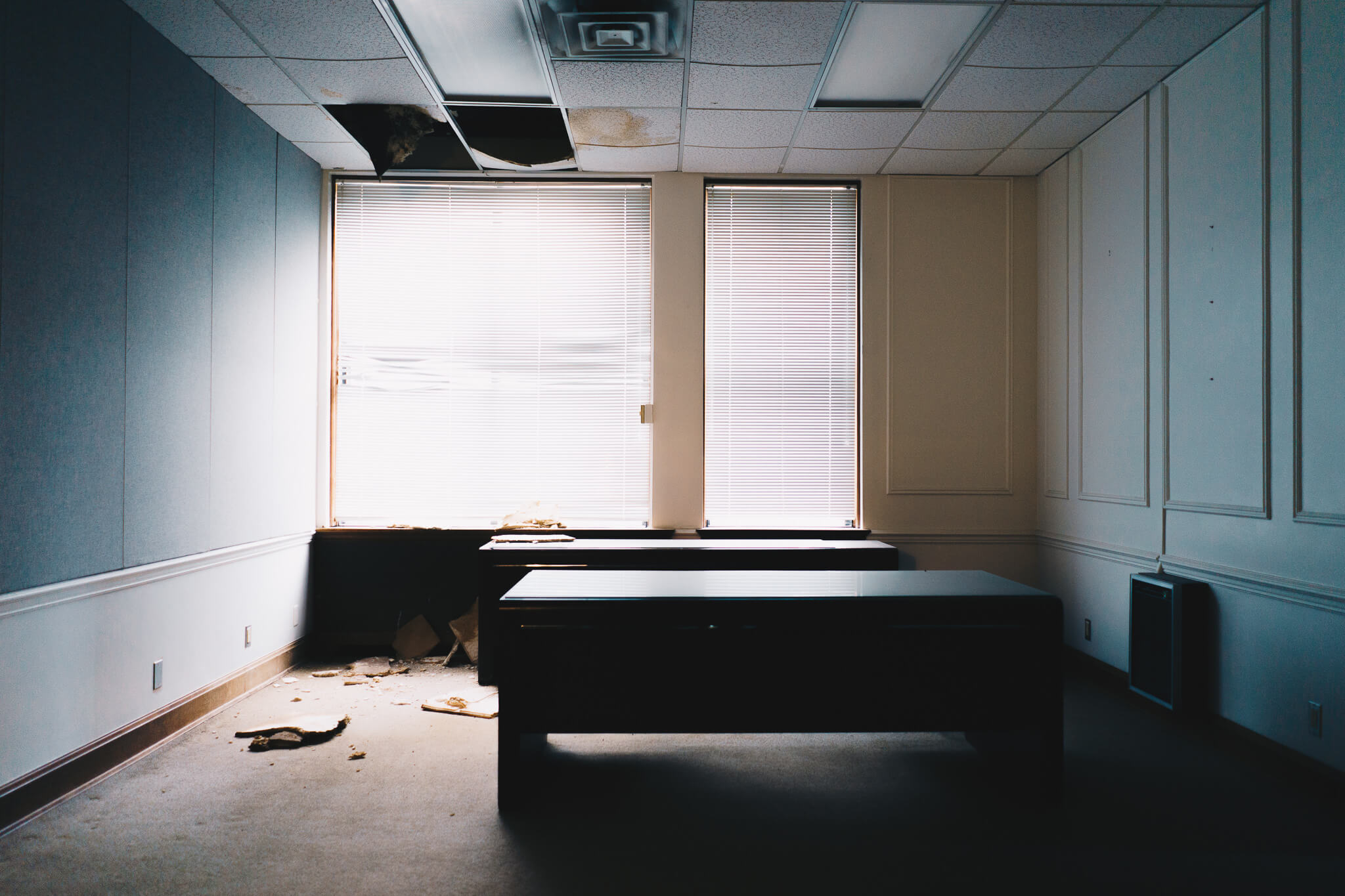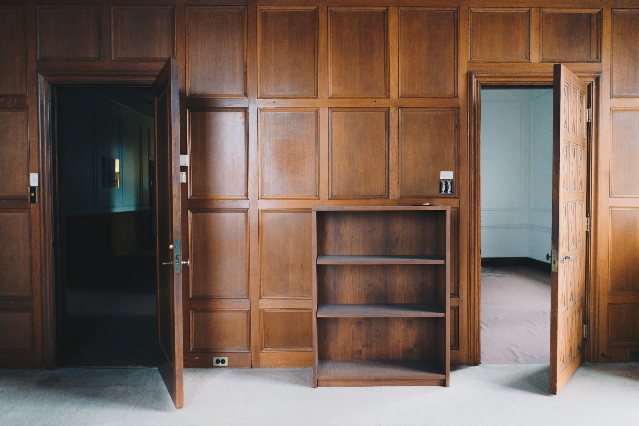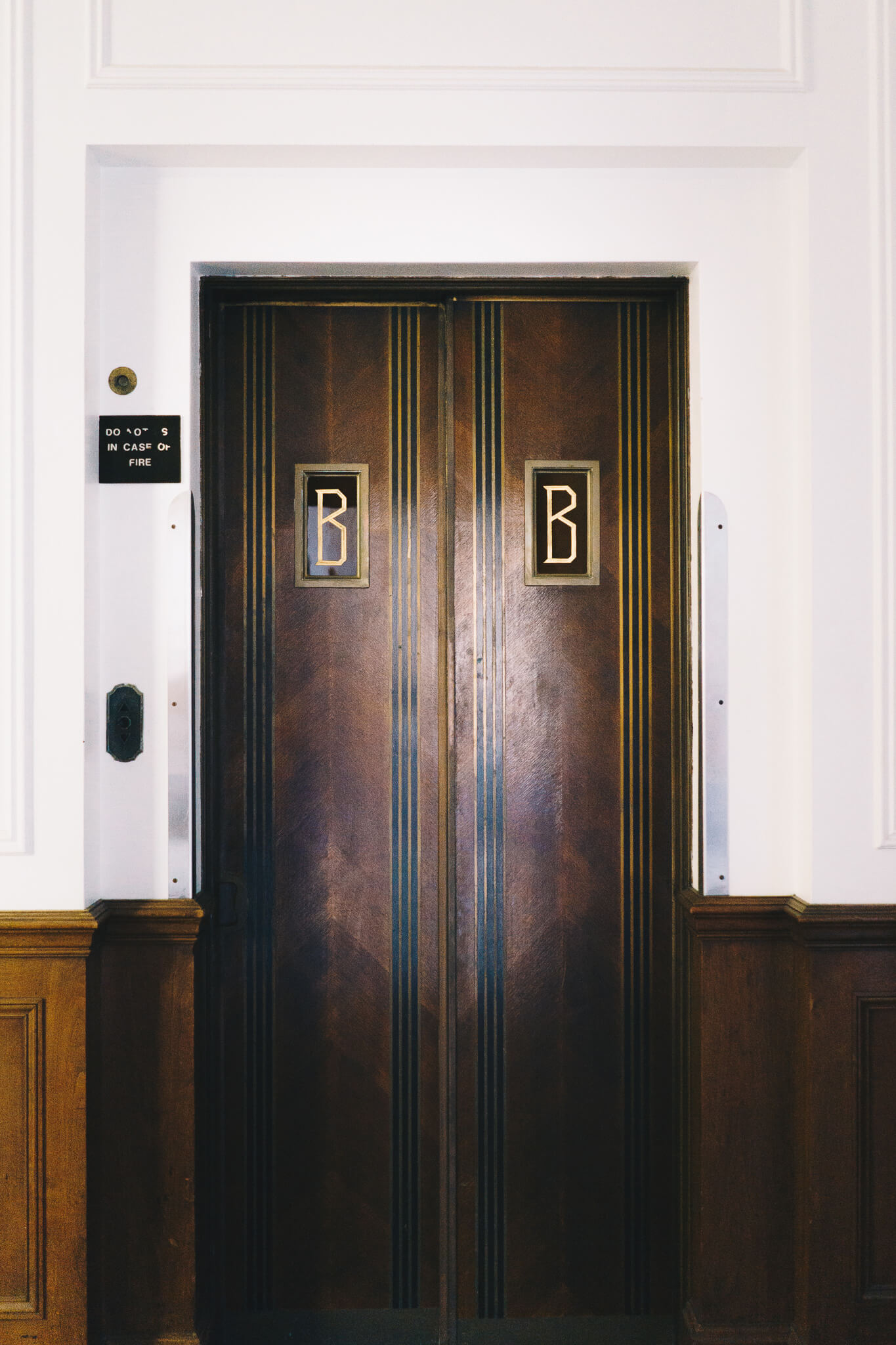 Finally, the third floor. Home to executive office suites including that of Vincent Bendix, the corporation's namesake founder. Art Deco influences from the entryway continue to pop up on the original elevator doors, and old wallpaper illustrated with a lavish "B" occasionally emerges from behind a coat of white paint.