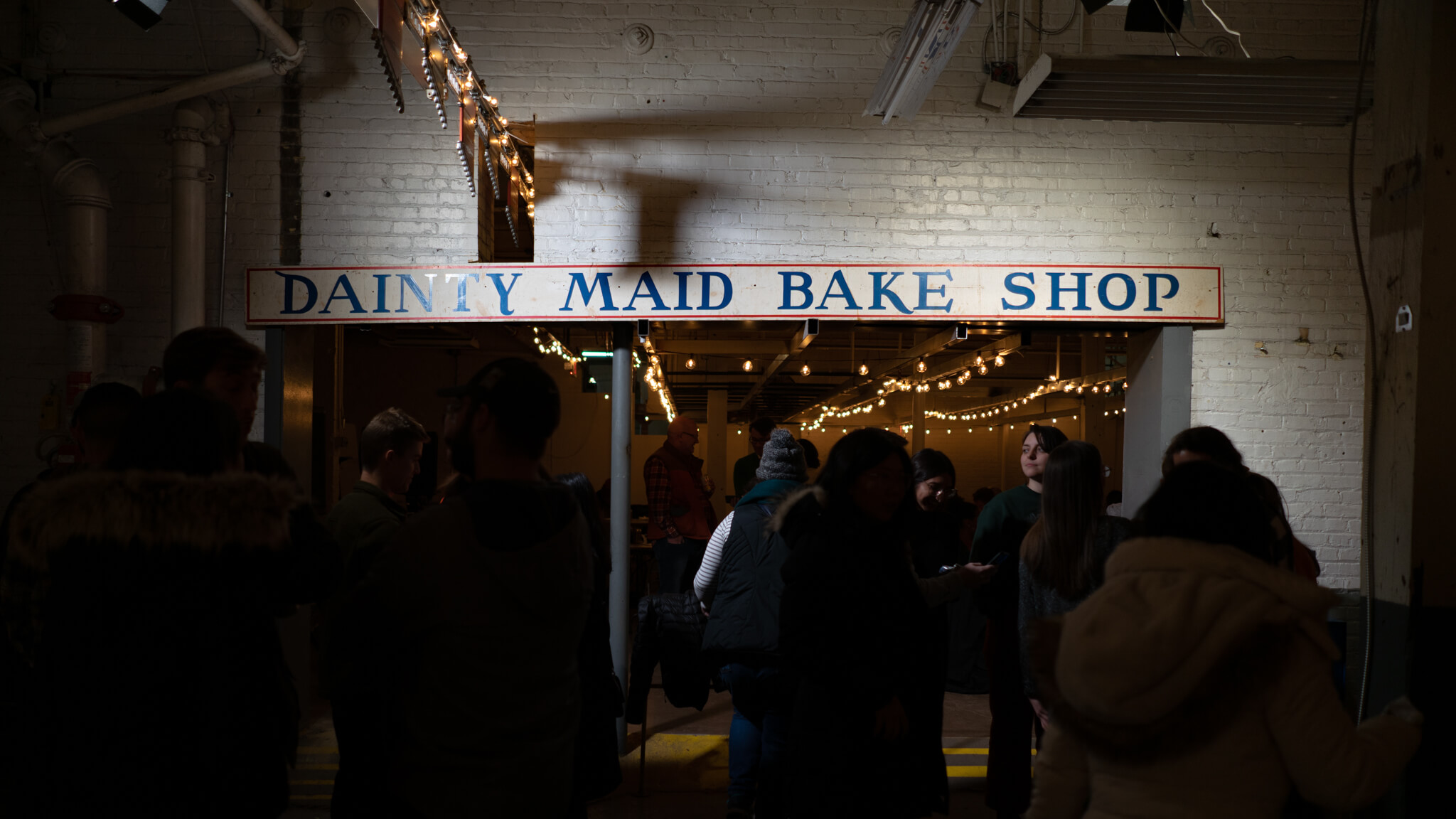 We gathered inside a vacant section of Vested Interest, the former Ziker dry-cleaning facility being repurposed as a home for small businesses and artists alike. In a matter of eight hours the empty space had become a pseudo-restaurant and bar using materials found throughout the building.