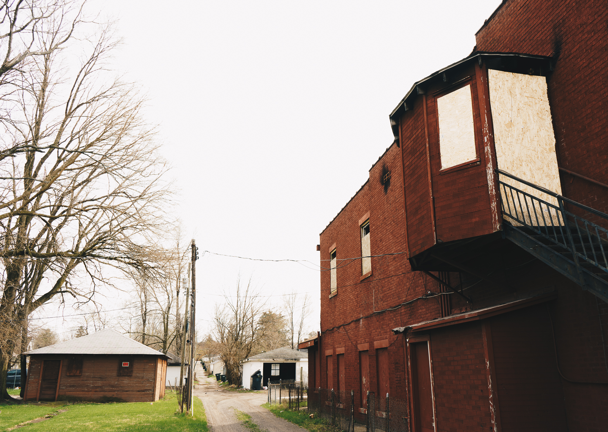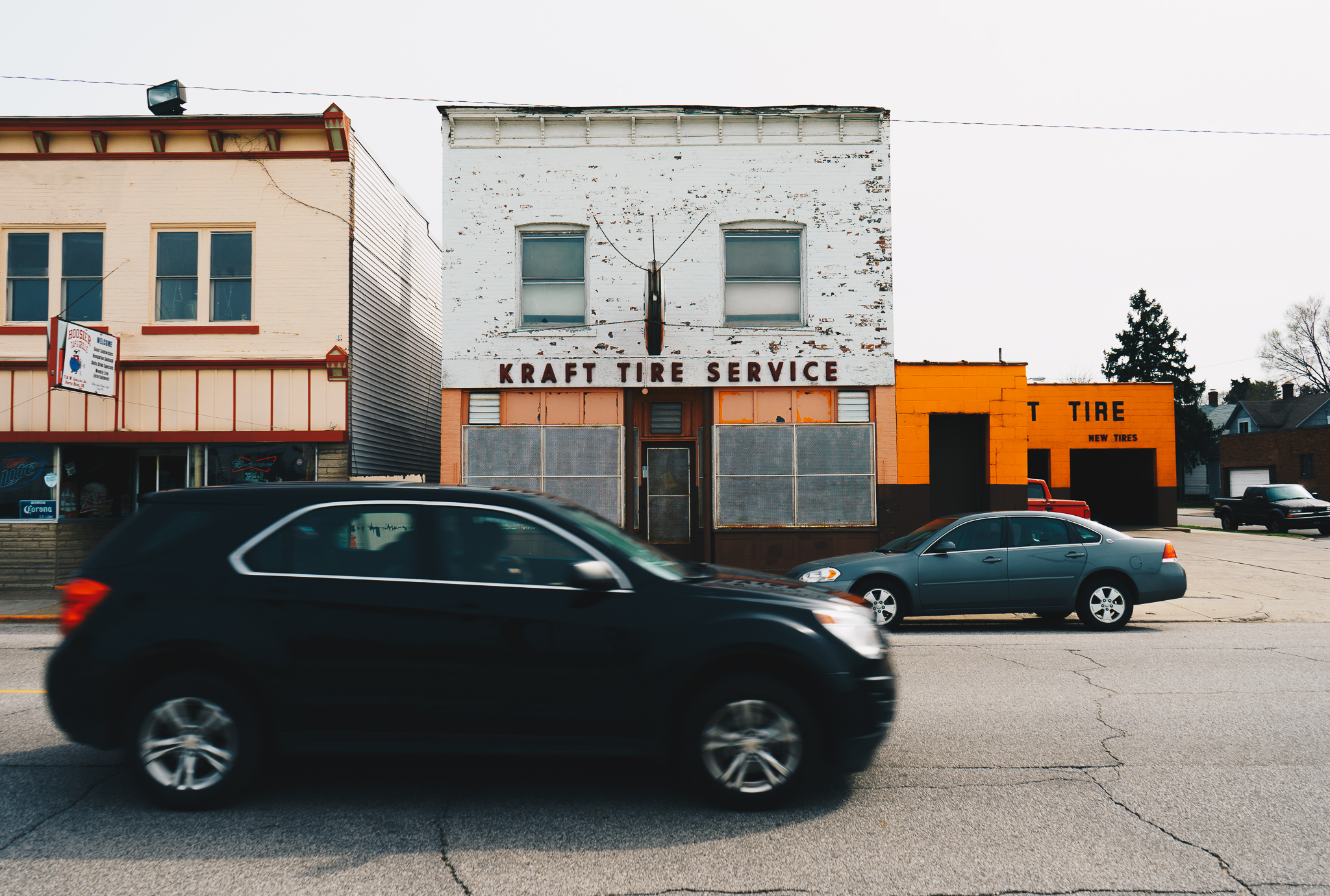 At 4:00 PM on Wednesday April 12th I met fellow photographer Mary McGraw for a stroll down Indiana Avenue on the South edge of downtown South Bend. Indiana Avenue, populated by a string of storefronts, sits in between the Rum Village neighborhood and the sprawling land formerly home to Studebaker and Oliver Plow.