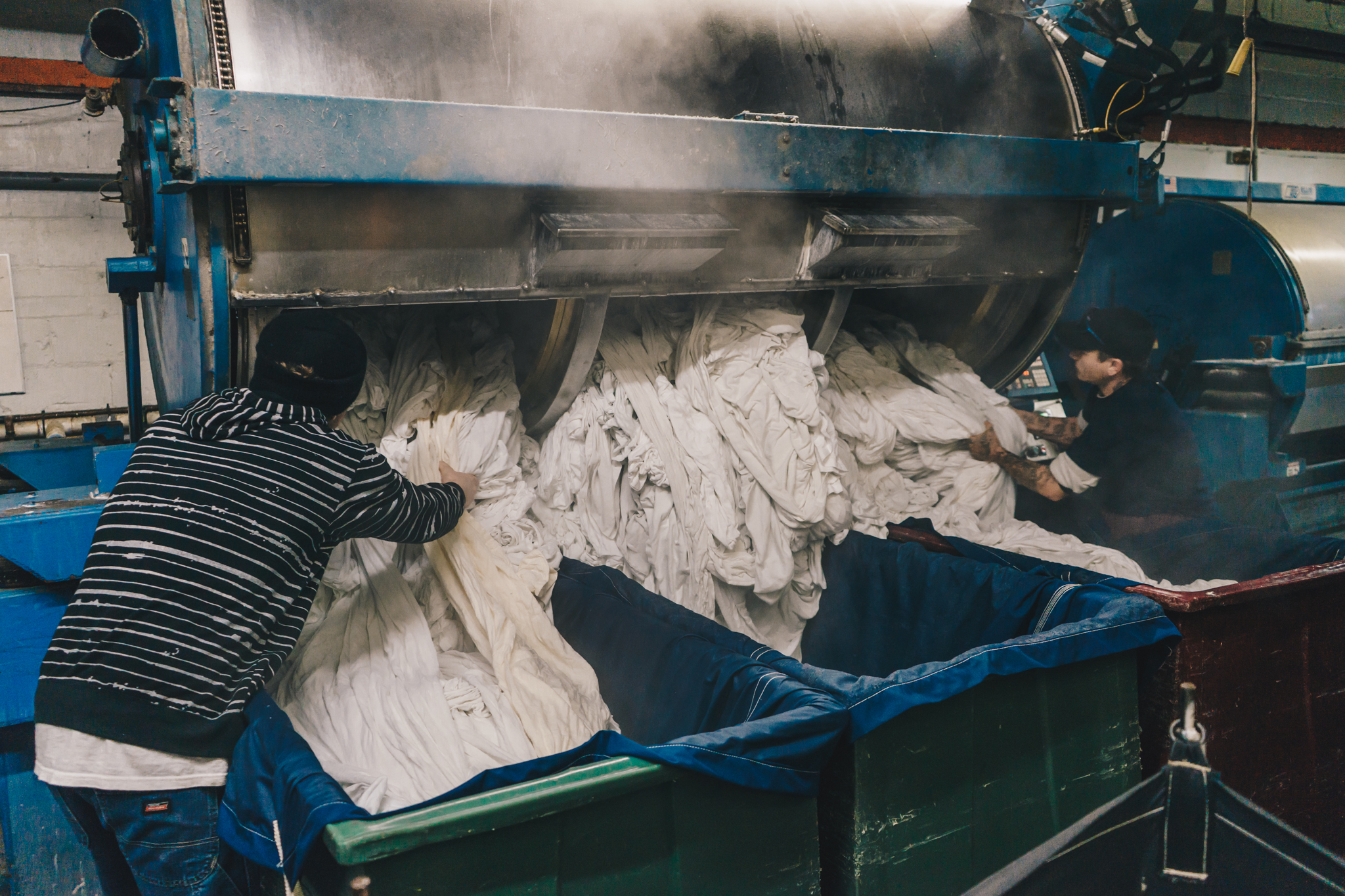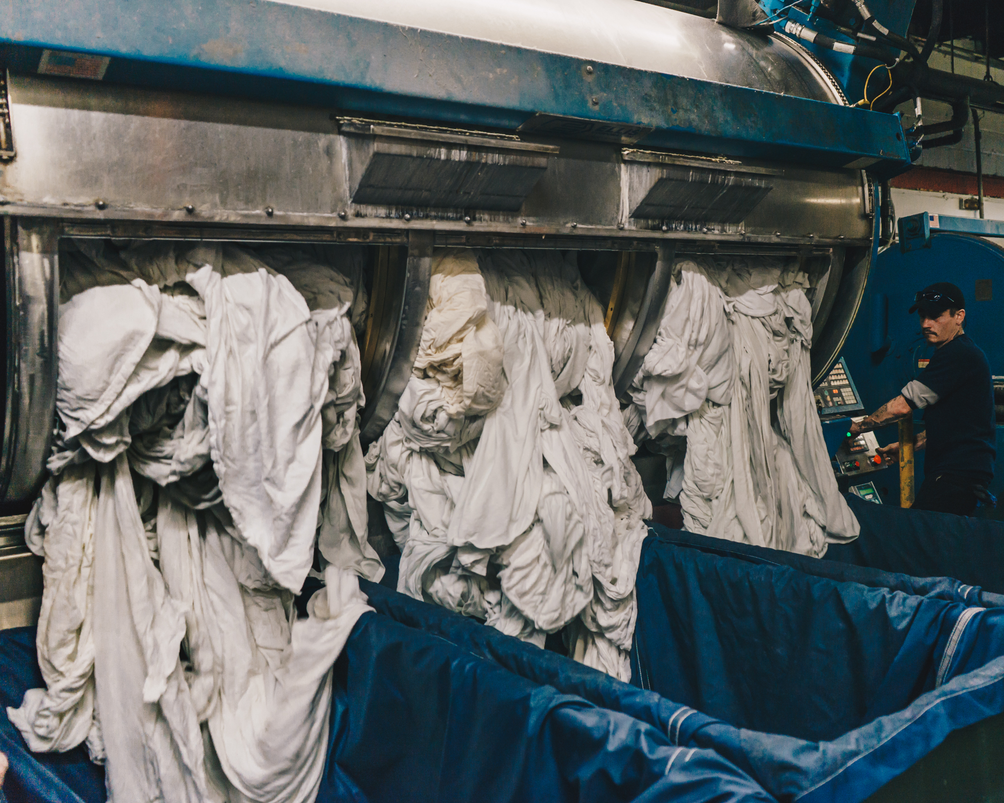 Monarch processes over 100,000 pounds of linen, mats and uniforms each week and delivers to businesses of all sizes throughout the South Bend area. General Manager Rob Burt gave us a window into the operation.