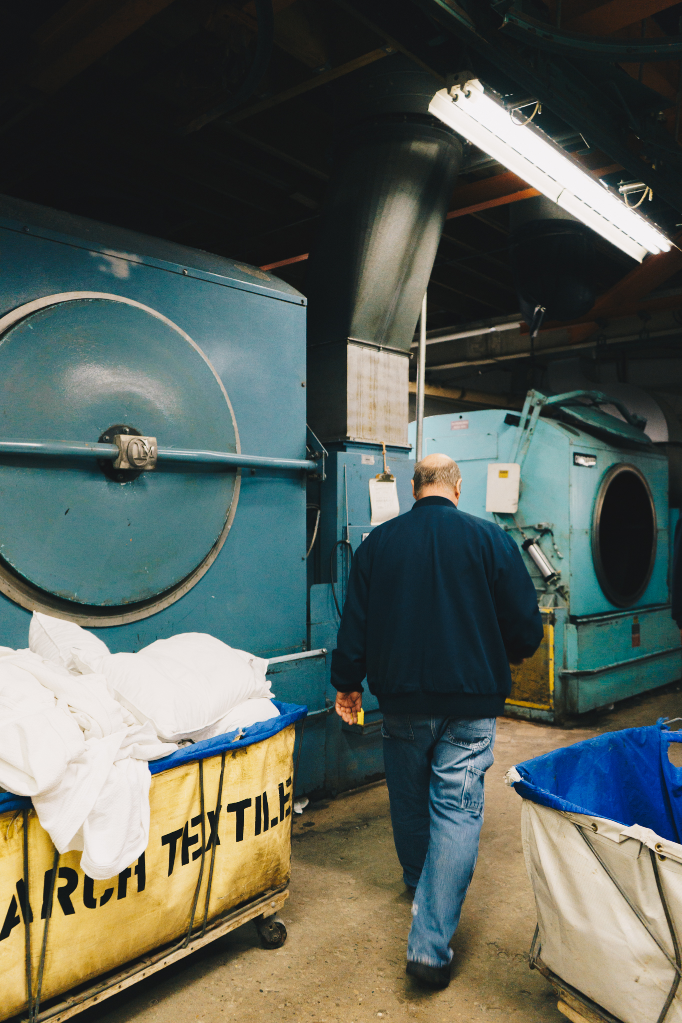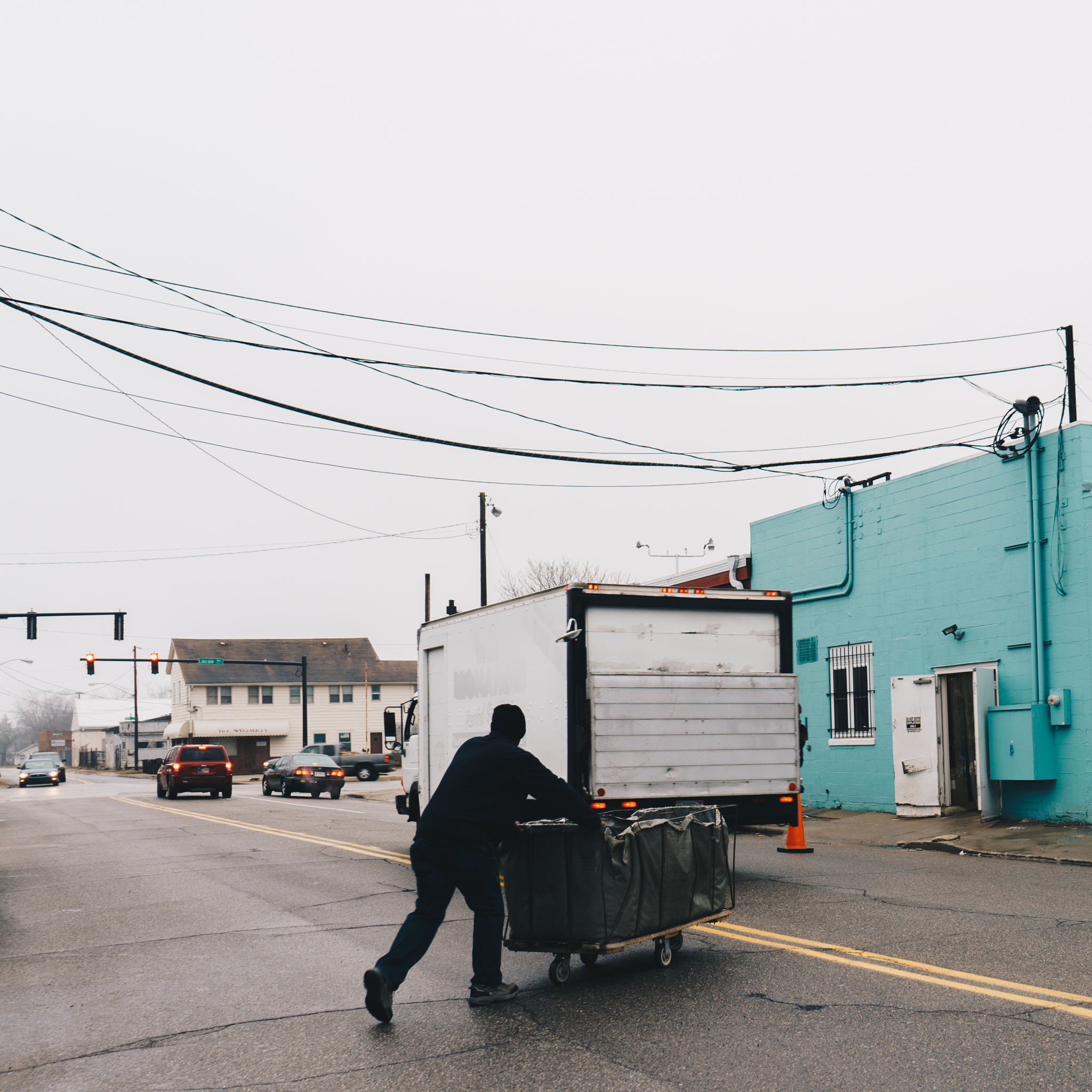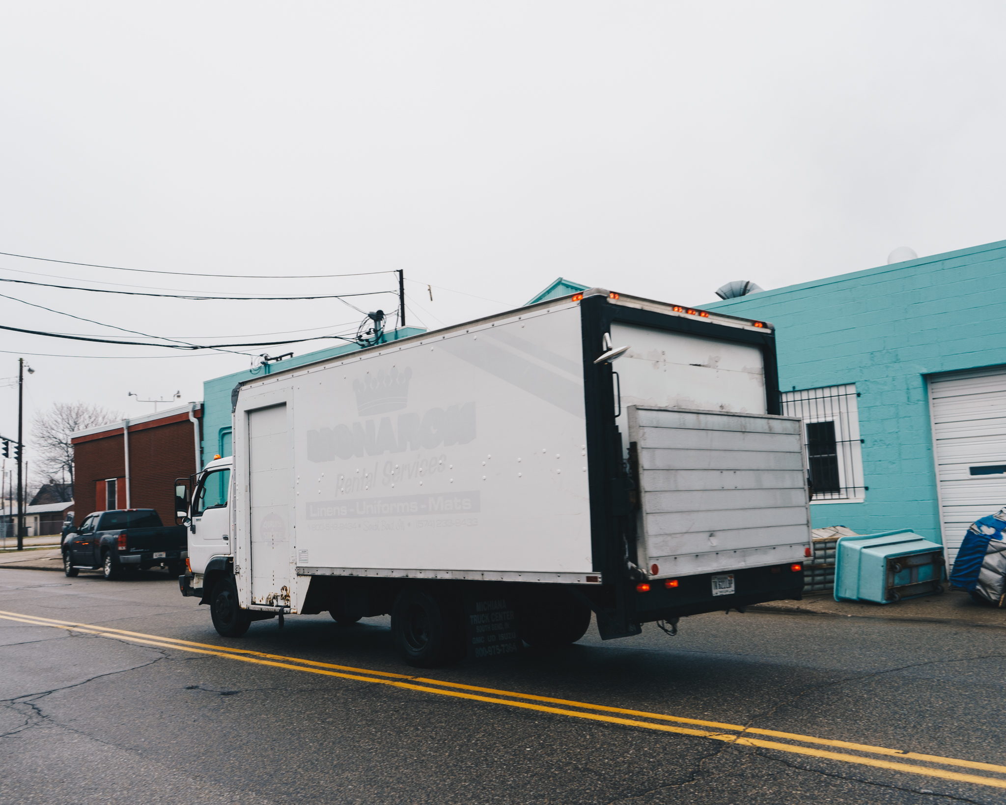 While living on Wilber Street during 2015 I drove past Monarch's shops each morning on the way to work. The shops are older, so I wasn't sure that they were in use until I noticed workers pushing carts of laundry across the street between buildings. This consistent sign of a new day has become one of my favorite sights along Lincoln Way West.