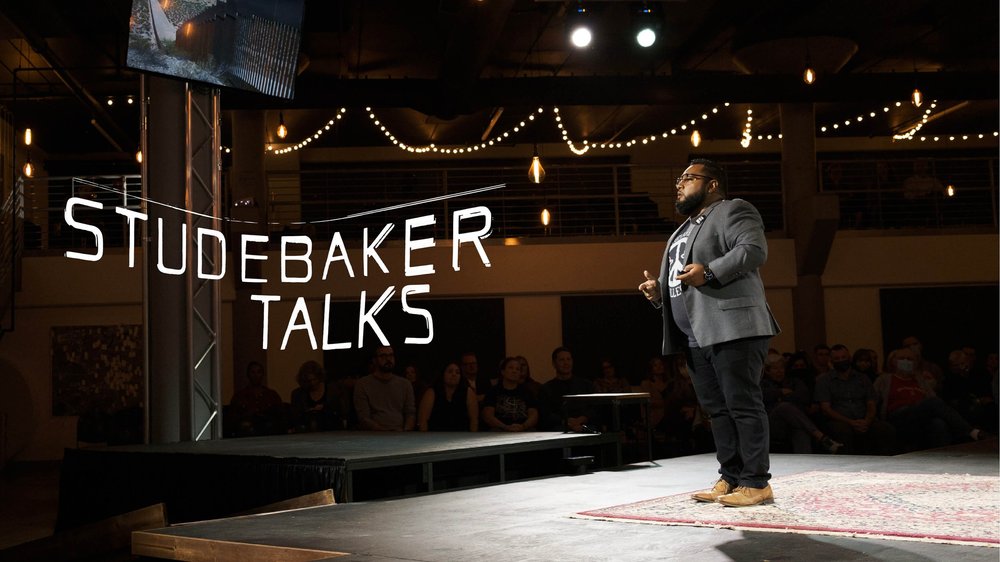 The Studebaker Talks is an annual gathering on a former Studebaker factory floor to listen to stories about South Bend's people, ingenuity, and progress. Our first gathering happened October 8, 2021, with 7 speakers and a sold-out crowd of 250, raising nearly $3,000 for the South Bend Education Foundation.