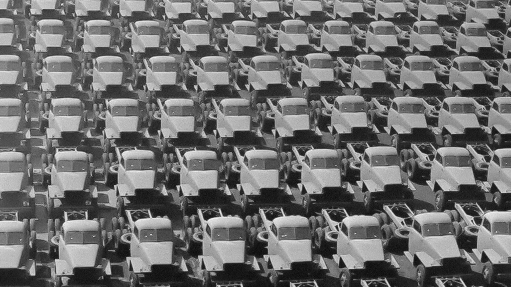 A few of the 197,678 Studebaker US6 military cargo trucks built in South Bend from June 1941 through August 1945.